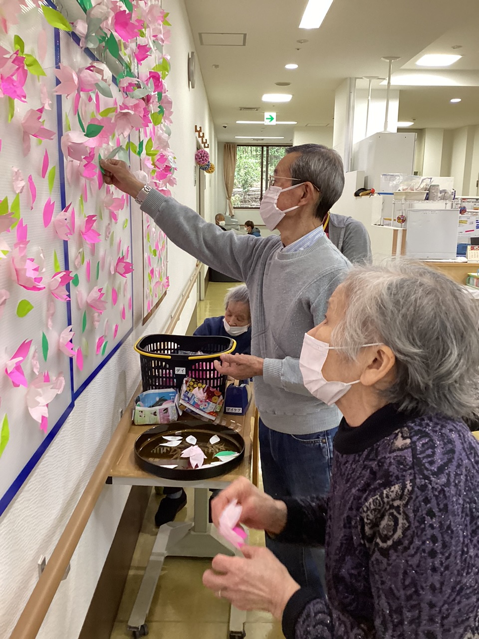 蒼生の桜ただいま満開です🌸 投稿日 2024年3月30日 著者 shoyokai 東京も3/29日に桜の開花が発表されましたね。 蒼生デイケアの桜はというと、みんなで協力してどんどん咲き始めています(o^^o) まだまだ、咲かせましょう♪ 高いところにもポンッと🌸 完成しました〜〜\( ˆoˆ )/🎶 壁いっぱいの桜❗️ 一足おさきに満開です♪(๑ᴖ◡ᴖ๑)♪