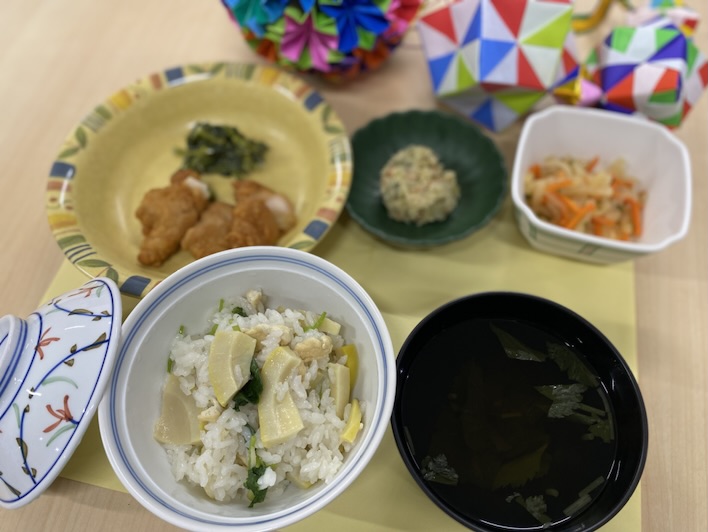 土鍋ご飯😋 投稿日 2024年4月25日 著者 shoyokai 昨日は、土鍋で今が旬の筍ご飯を炊きました🎋 午前中、皆さんの前で、土鍋で炊いていたので、筍の美味しい香りがフロアいっぱいに広がって、みなさん楽しみにしているようでした😋😆😋😆 食べている表情は、みなさん、いい笑顔でした😋😆