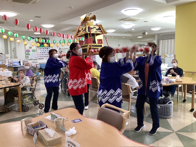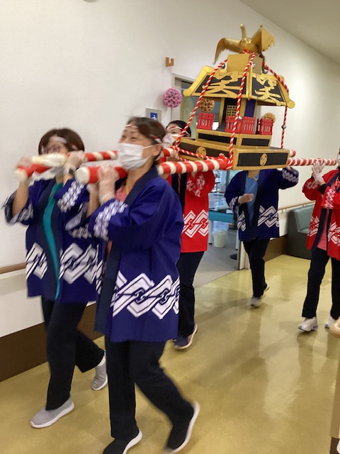 🪭🏮秋祭り🏮🪭 投稿日 2025年10月3日 更新日 2025年10月4日 著者 shoyokai 秋祭りを開催しました🏮 職員は法被姿で神輿を担いで登場です👏🏮 利用者様の「わっしょい、わっしょい!」のかけ声で盛り上がりました😆🏮😆 その後は、ビンゴをして盛り上がり秋の歌を歌い楽しみました🤩😆