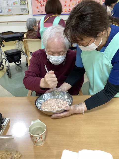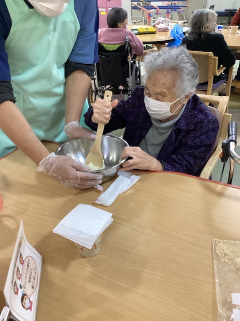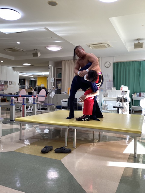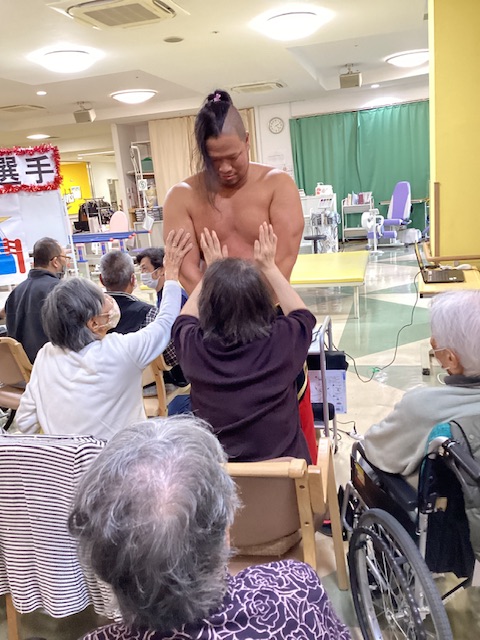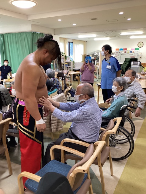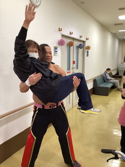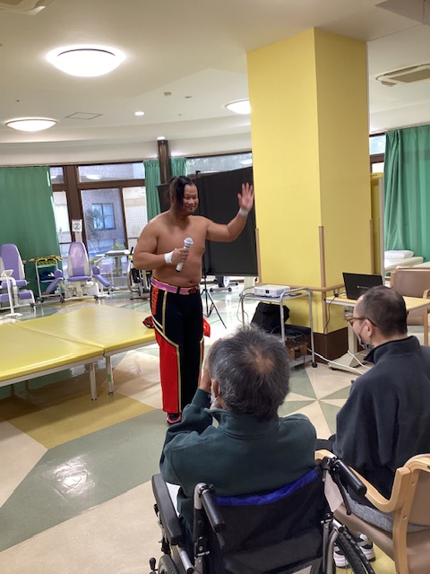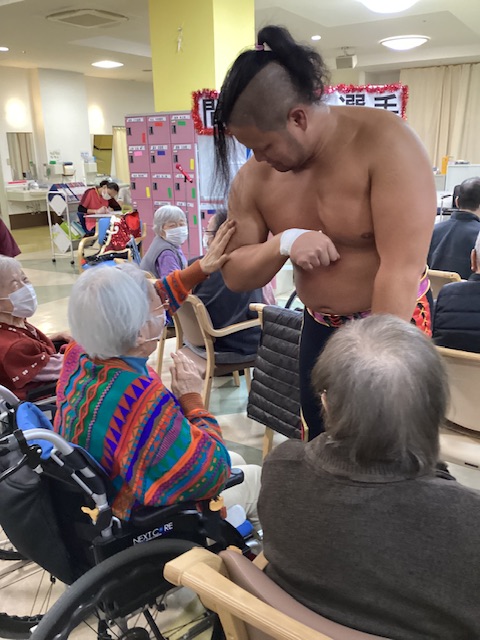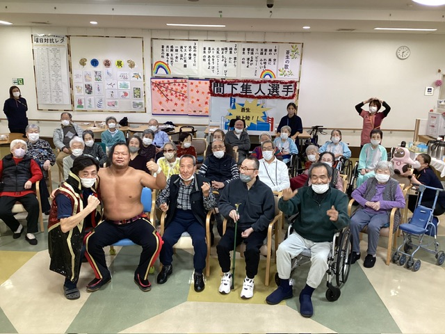 🍁11月の行事🍁 投稿日 2025年11月29日 著者 shoyokai 11月中旬にプロレスラーの間下隼人選手が来てくれました😆 間下隼人選手は、初代タイガーマスクの最後の弟子です🐯 間下隼人選手からプロレスでの出来事や技、力持ちの所も見せて頂きました😆 あと、利用者の方々と握手をしたり、触らせてもらい、みんな、大興奮😆🤩😆🤩 間下隼人選手からサインも頂きました👏🤩🏆 次は、下旬に行った、おやつレクの様子です😋 5年ぶりに開催する事が出来ました🎉 作ったのは、レアチーズケーキです🍰😋 美味しく食べました😋👏