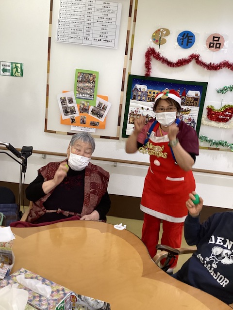 ビンゴでプレゼントを当てたり、皆さんで冬の歌を歌ったり、音楽に合わせ、エッグシェイカーを振り、楽しい時間を過ごしました🎶🧑🎄🎄